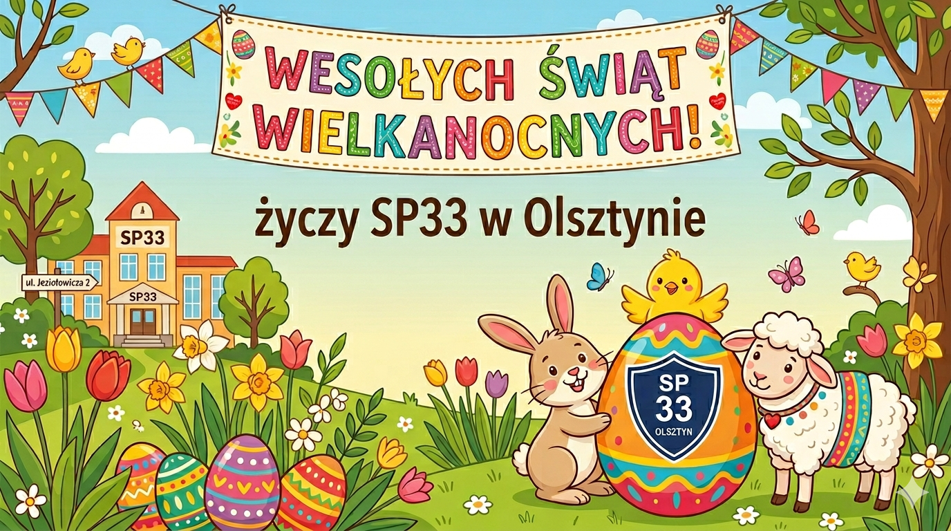 Z okazji Świąt Wielkanocnych składamy całej społeczności Szkoły Podstawowej nr 33 w Olsztynie – Uczniom, Rodzicom, Nauczycielom oraz Pracownikom szkoły – najserdeczniejsze życzenia.